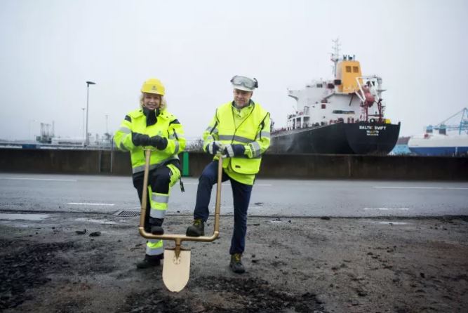 Jill Söderwall from the Port of Gothenburg and Johan Zettergren from Swedegas broke ground for the new plant earlier in the year