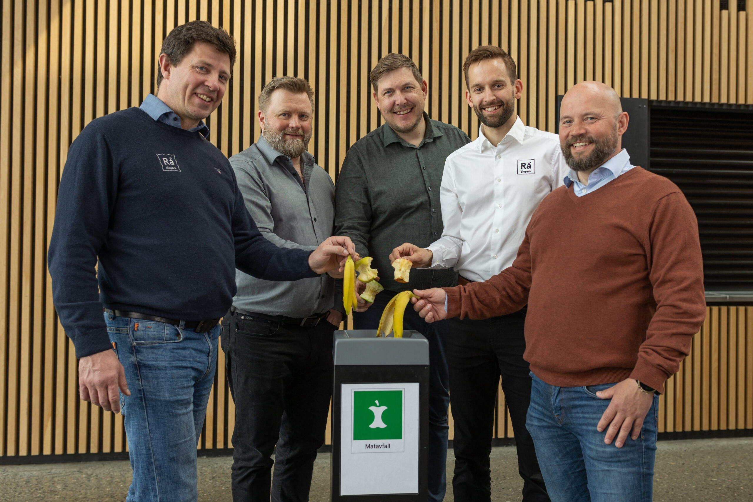 Rå Biopark, som skal produsere biogass tilsvarende 5 millioner liter diesel av blant annet matavfall, har inngått intensjonsavtale om salg og distribusjon med Barents NaturGass til en verdi av 1,2 milliarder kroner. Fra venstre Simon Ford (Teknisk sjef, Rå Biopark), Stig Ove Hjelmevoll (Kvalitetsleder, Barents NaturGass), Mikael Rikstad Iversen (Salgssjef, Barents NaturGass), Sigve Daae Rasmussen (Daglig leder, Rå Biopark) og Frank Tony Arnesen (Driftsdirektør, Barents NaturGass)
